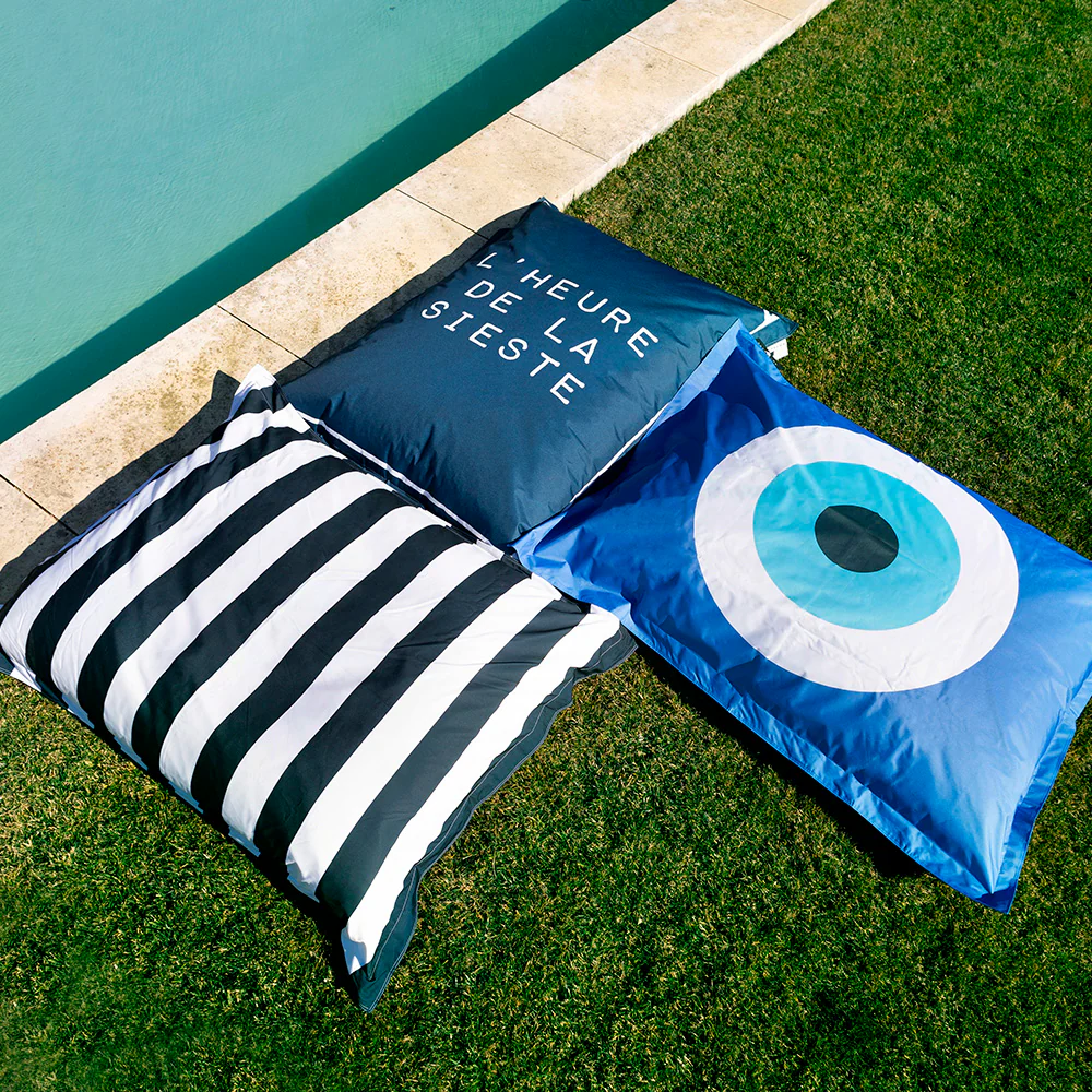 Look blu e bianco per il nostro pouf da esterno